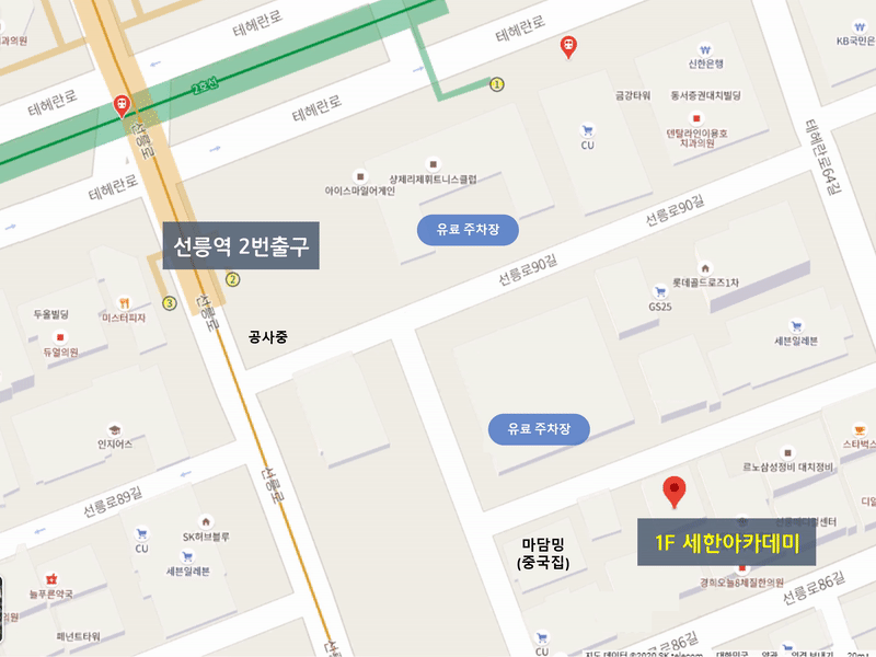 - 학원주소 서울특별시 강남구 테헤란로64길 16-9, K&Y빌딩 1~4층(전화 : 02-3453-3422)